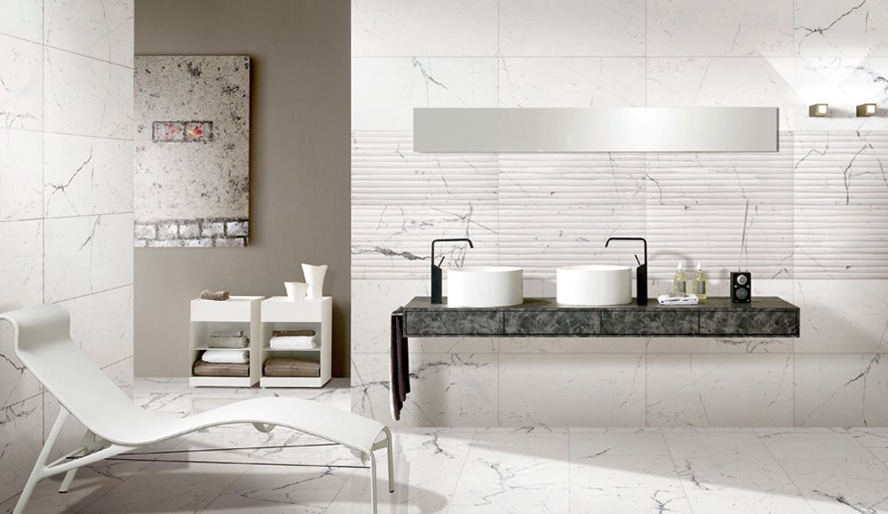Pietra Statuario源自闻名世界的意大利卡拉拉采石场,承袭了卡拉拉石材质地坚硬、密度大的特性。浅灰色斜纹、疏密有度,与洁白通透的背景相互辉映,浅浅地宣扬着内在的石材基因,非常适合追求洁净和时尚的商用或家居空间。